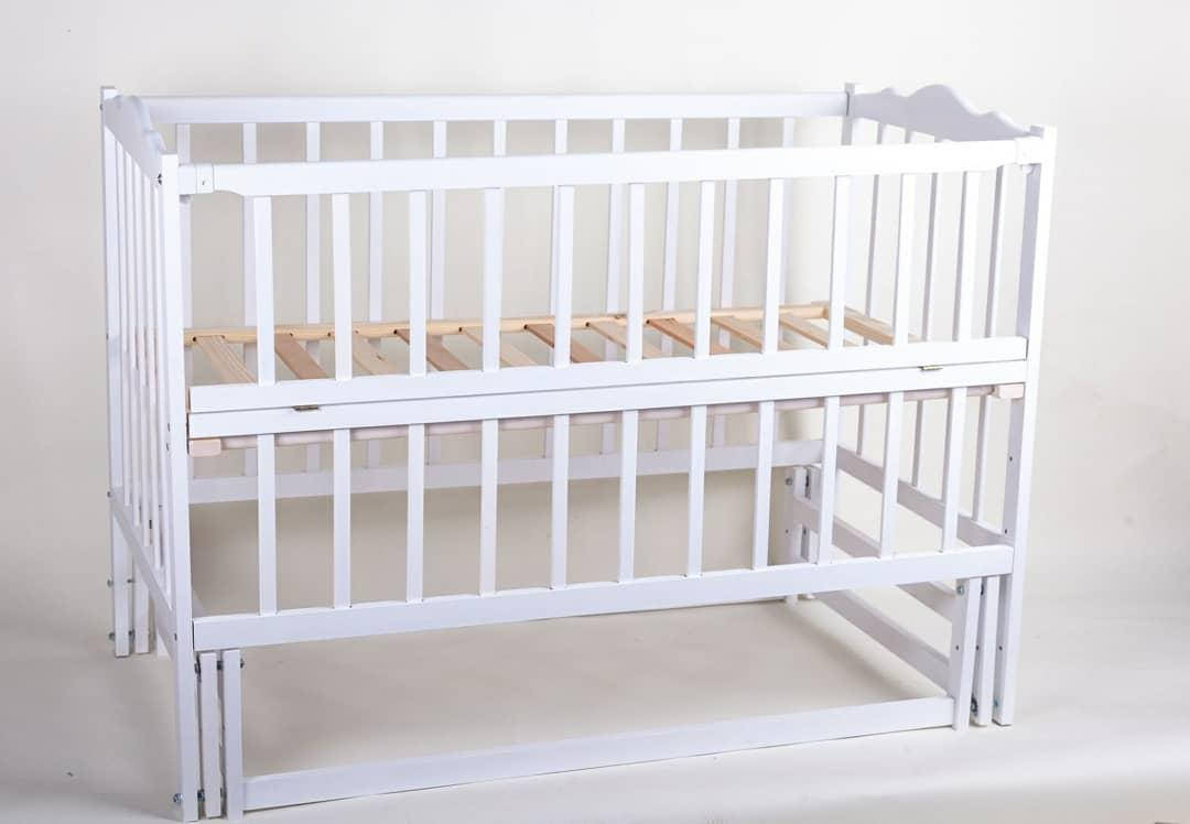 Кроватка белая с маятниковым механизмом на подшипниках, опускается боковина, три положения дна, мягкое и плавное качание. Покрытие неалергенное, собирается по инструкции достаточно легко. Дерево ольха,Размер есть буковые кровати большой ассортимент с разной ценовой политикой. Для деталей уточняйте в Вайбер 0685444040 стандарт 120*60. Есть еще цвет бежевий и венге