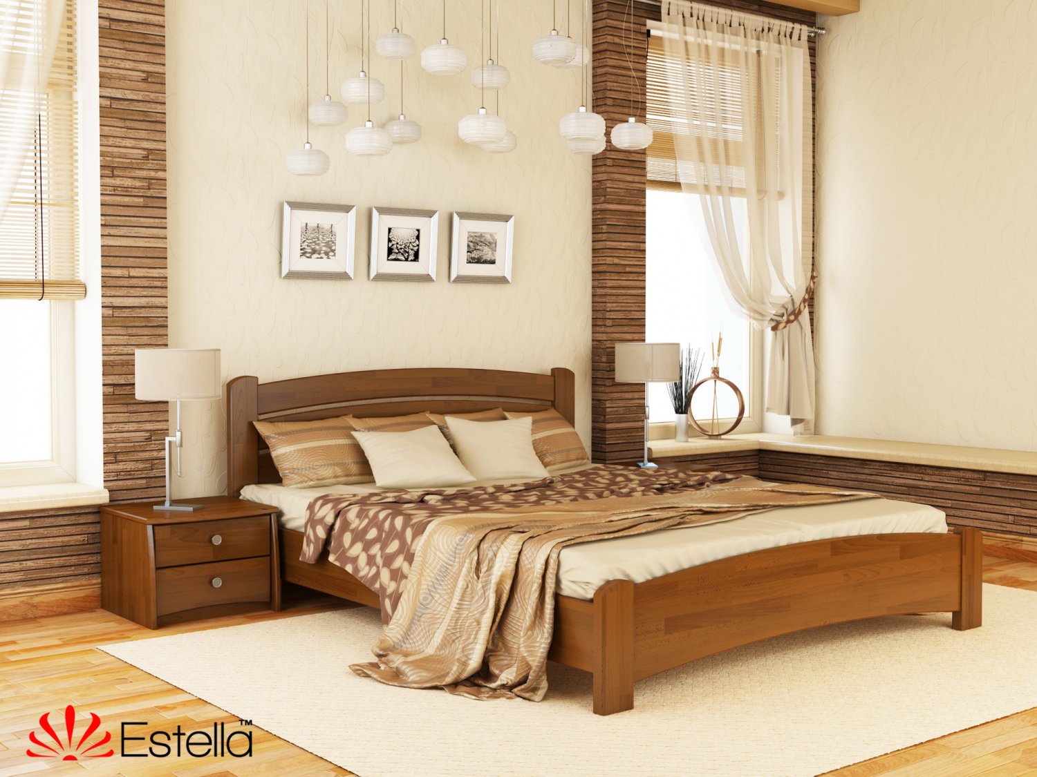 Кровать полуторная деревянная 120х190 Estella Венеция Люкс Орех Светлый (Щит-103) Л2.5