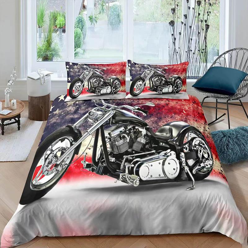 Кровать с 3D принтом мотоцикла, комплект из трех предметов, набор подушек, большая двуспальная кровать, домашнее постельное белье Queen