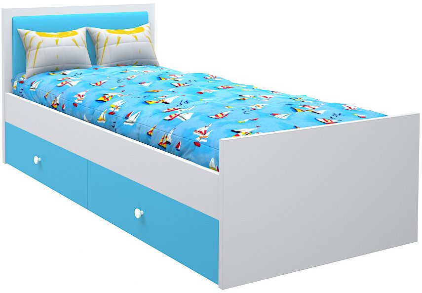 Кровать-тахта МДК Феникс с мягким изголовьем и ящиками 80x160 Ф4-160-Г (голубой)