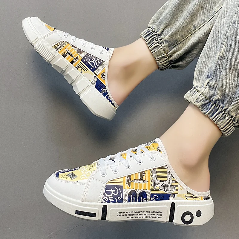 Mens Summer Without Heel Shoes Lazy Slippers For Men Outdoor Slip-on Footwear Mules Fashion Mens Half Slippers Casual Loafers