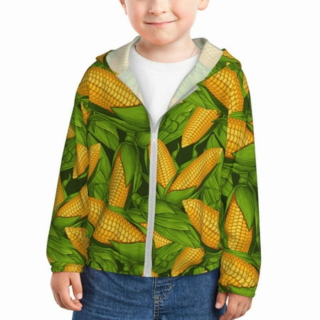Gaeub Fresh Corn 1 Print Athletic Sun Protection Hoodie for Kids Long Sleeve Outdoor UV Shirt Running Fishing Top for Boys Girls-3 Years