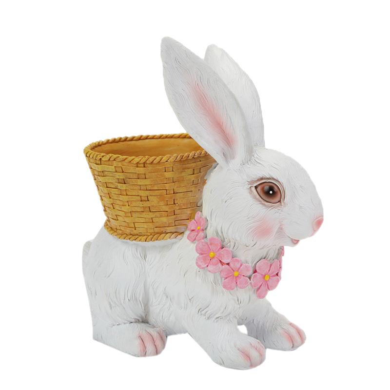 Кролик Цветочный горшок Смола Процесс Кролик Украшение с Задней Корзиной Наружное Украшение для Двора белый