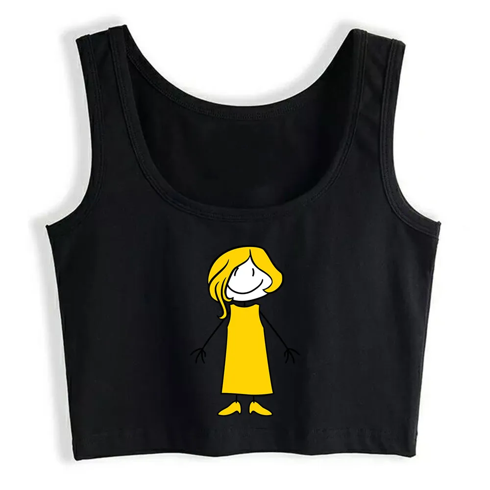 Кроп-Топ для женщин, милая маленькая девочка, милый мультяшный комикс, мультфильм C Harajuku, майка, Женская забавная женская одежда