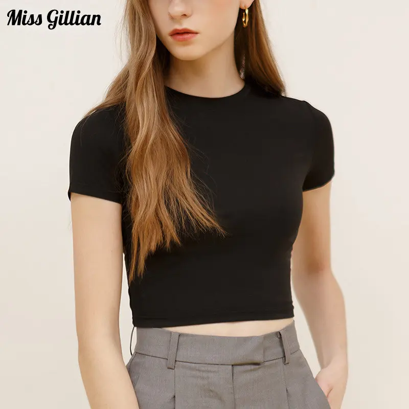 Кроп-Топ женский из модала однотонный с круглым вырезом и коротким рукавом