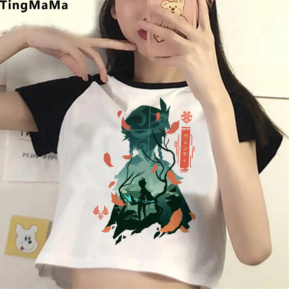 Кроп-топ genshin impact cyber y2k в Корейском стиле, модная Милая Винтажная футболка в Корейском стиле