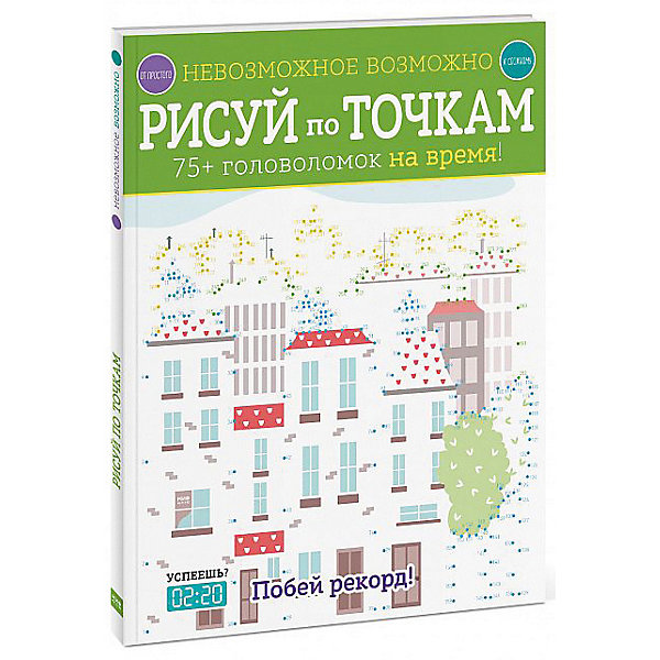 «Невозможное возможно, Рисуй по точкам» содержит более 75 головоломок, в которых нужно соединить от 100 до 1000 точек, чтобы получилась картинка. Рисовать нужно на время: на самые простые задания в начале книги дается чуть более двух минут, а на самые сложные в конце — уже более получаса! Конечно, в книге есть ответы, но они чаще бывают нужны взрослым. Как правило, дети с такими заданиями справляются сами, без подсказки. Наиболее понравившиеся картинки можно раскрасить. С этой книгой ваш ребенок забудет о скуке!