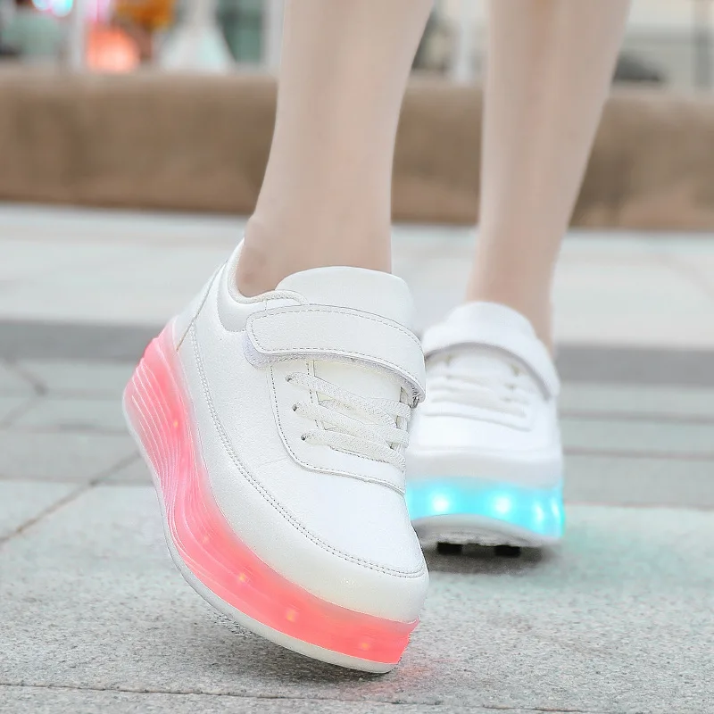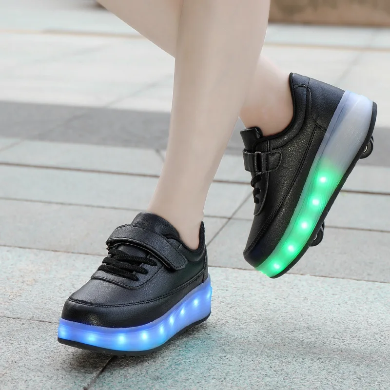 Кроссовки Детские кожаные на четырех колесах, со светодиодной подсветкой, размеры 28-42