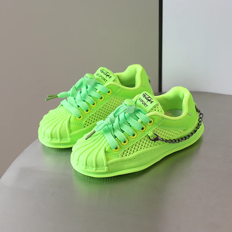 Кроссовки детские для девочек, дышащие сетчатые, спортивная обувь для бега, белые, зеленые, лето 2023