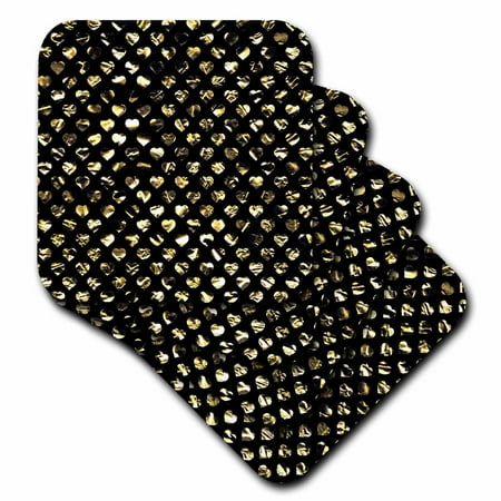 3dRose Gold Foil Effect Heart pattern on Black Background- non metallic Soft Coasters set of 4