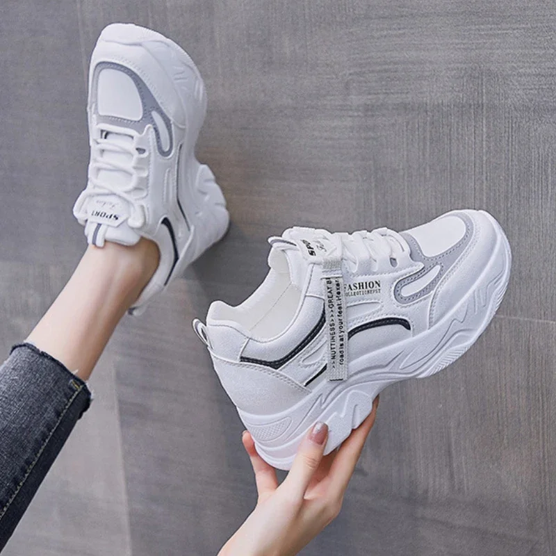 Кроссовки женские на платформе, Вулканизированная подошва, повседневная обувь для бега, теннисные туфли, белые