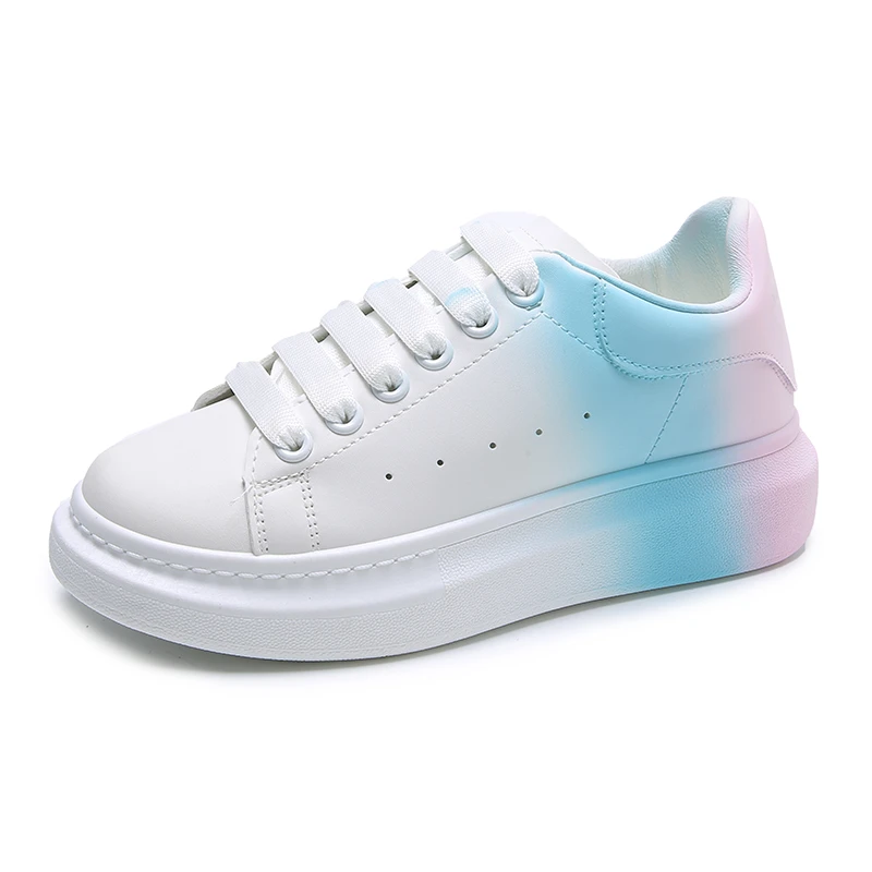 Кроссовки женские на платформе, повседневная обувь большого размера, Рисованные вручную, белые, для скейтборда