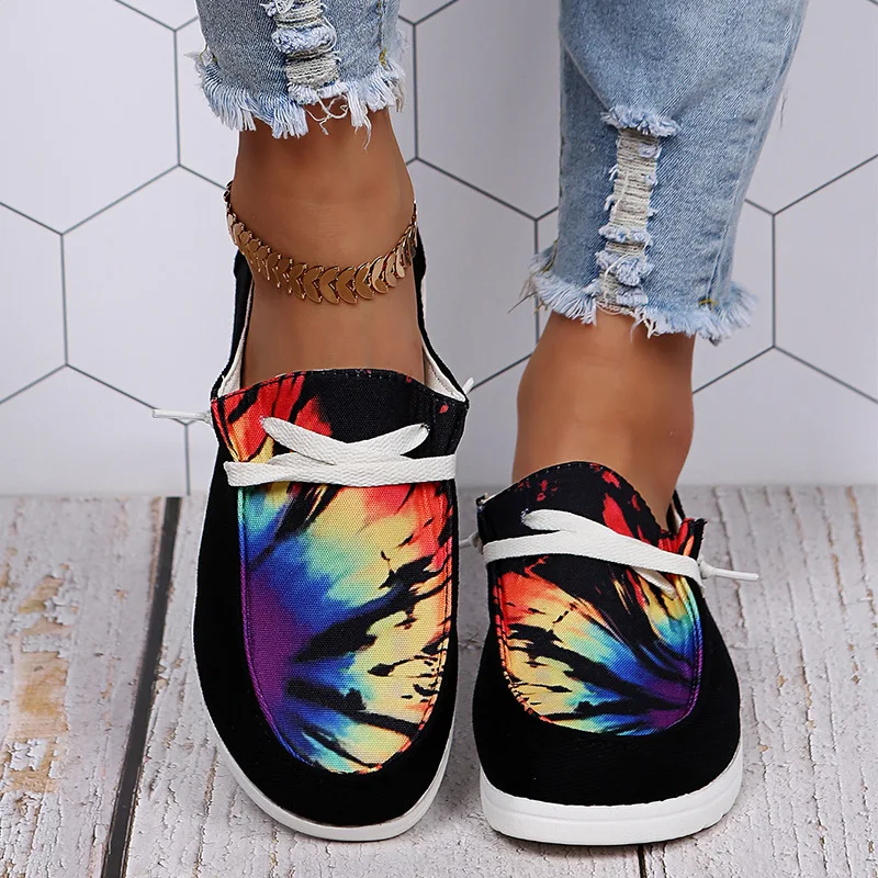Кроссовки женские с принтом на шнуровке, плоская подошва, без застежки, лодочки, прогулочная обувь, разноцветные, лето