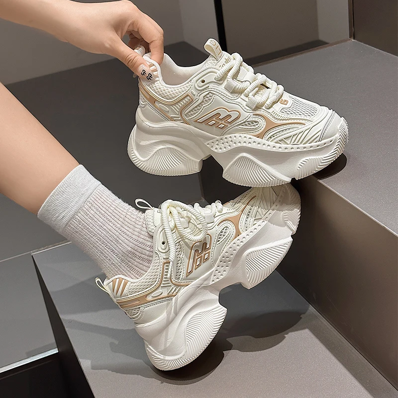 Кроссовки женские с сетчатым верхом, дышащие, на толстой подошве 7 см, лето 2024
