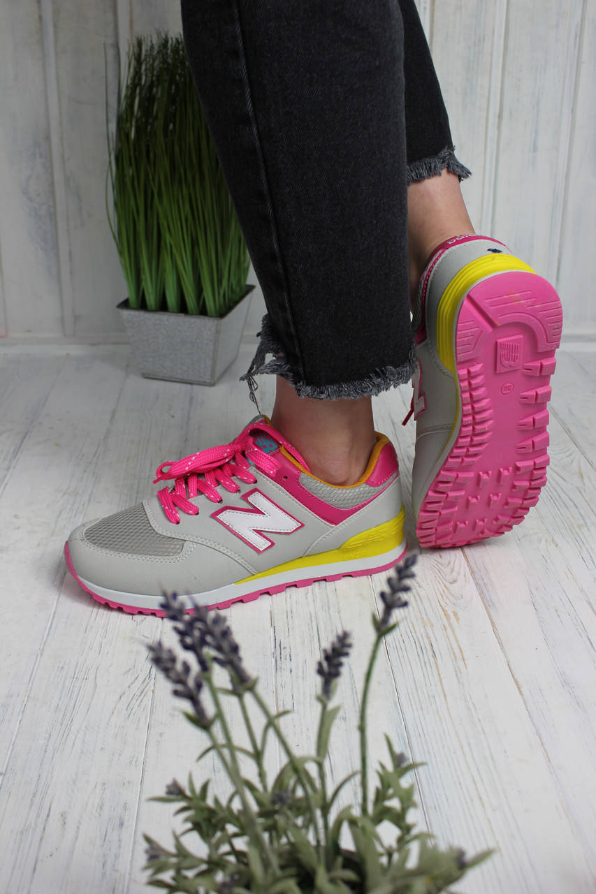 Кроссовки женские New balance 574 серые с розовым 37, Серый
