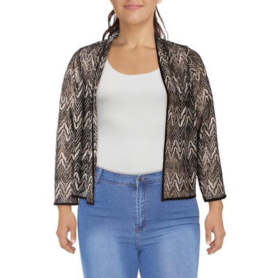 Женский черно-белый вязаный блейзер с открытым передом Jessica Howard, кардиган размера плюс, 14 Вт, BHFO 3857, Black-white