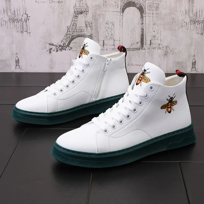 Кроссовки мужские высокие кожаные, модная повседневная обувь с вышивкой пчела, на шнуровке, ботильоны для скейтборда, баскетбола