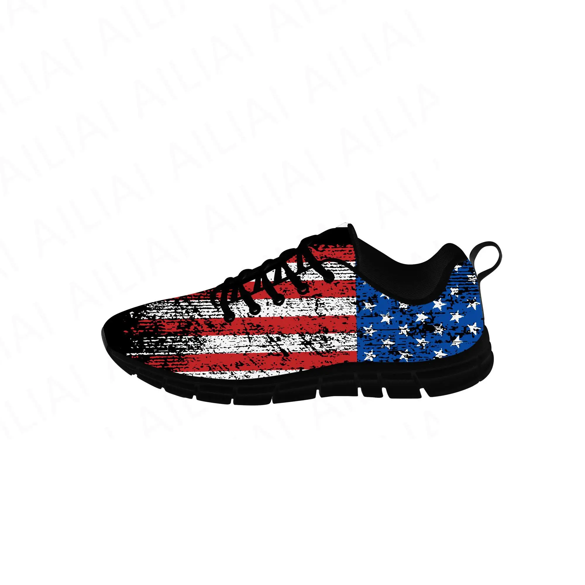 Кроссовки мужские/женские с американским флагом, повседневная холщовая обувь для подростков, дышащие легкие кеды, черные