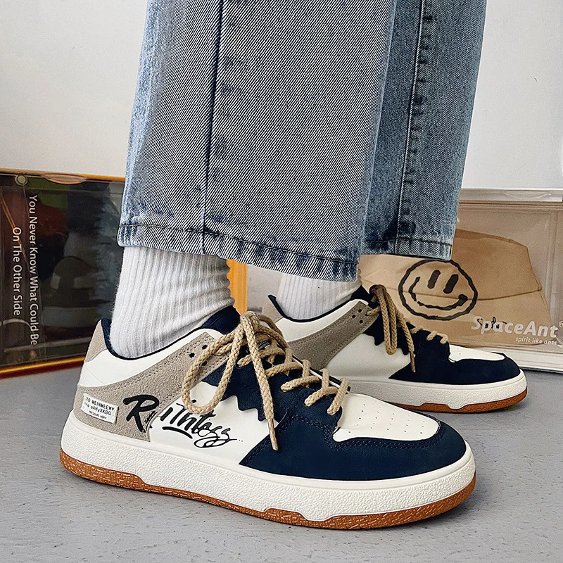 Кроссовки мужские из ПУ кожи, модная повседневная обувь в стиле пэчворк, мягкая нескользящая подошва, универсальные, размер 39-44