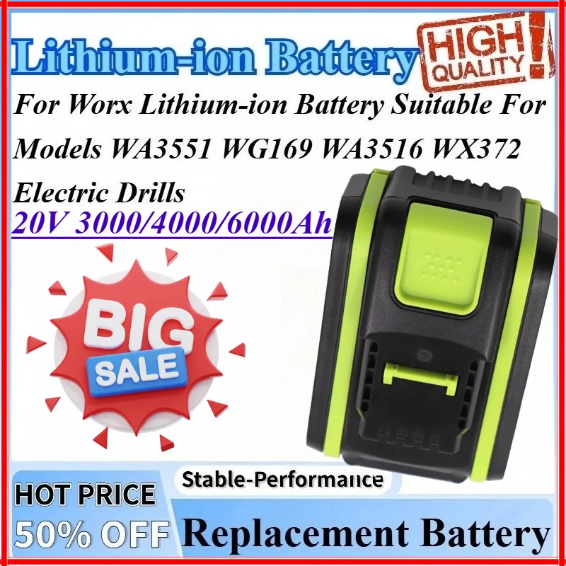 20V 3/4/6Ah Rechargeable Battery For Worx Lithium-ion Battery Suitable For Models WX372 WA3551 WA3516 WG169 Electric Drills