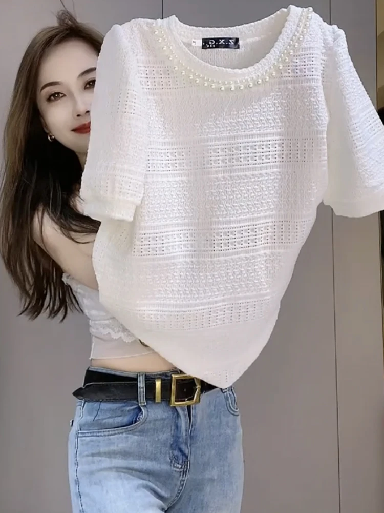 Faionable ort Sve Lace irt женские Sli с тяжелой вышивкой из бисера Quali круглый топ Ne модное летнее новое поступление