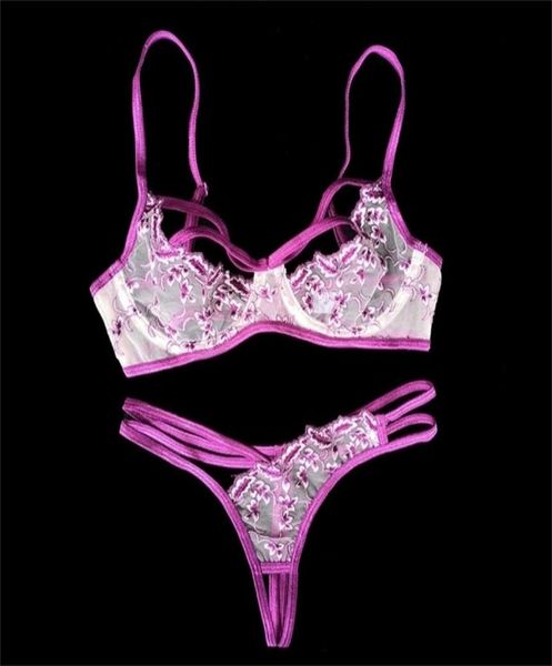 bra and panty set ultrathin gauze embroidered underwear lingerie crotchless panties lace bra set transparent intimates lj2018597816, Red;black