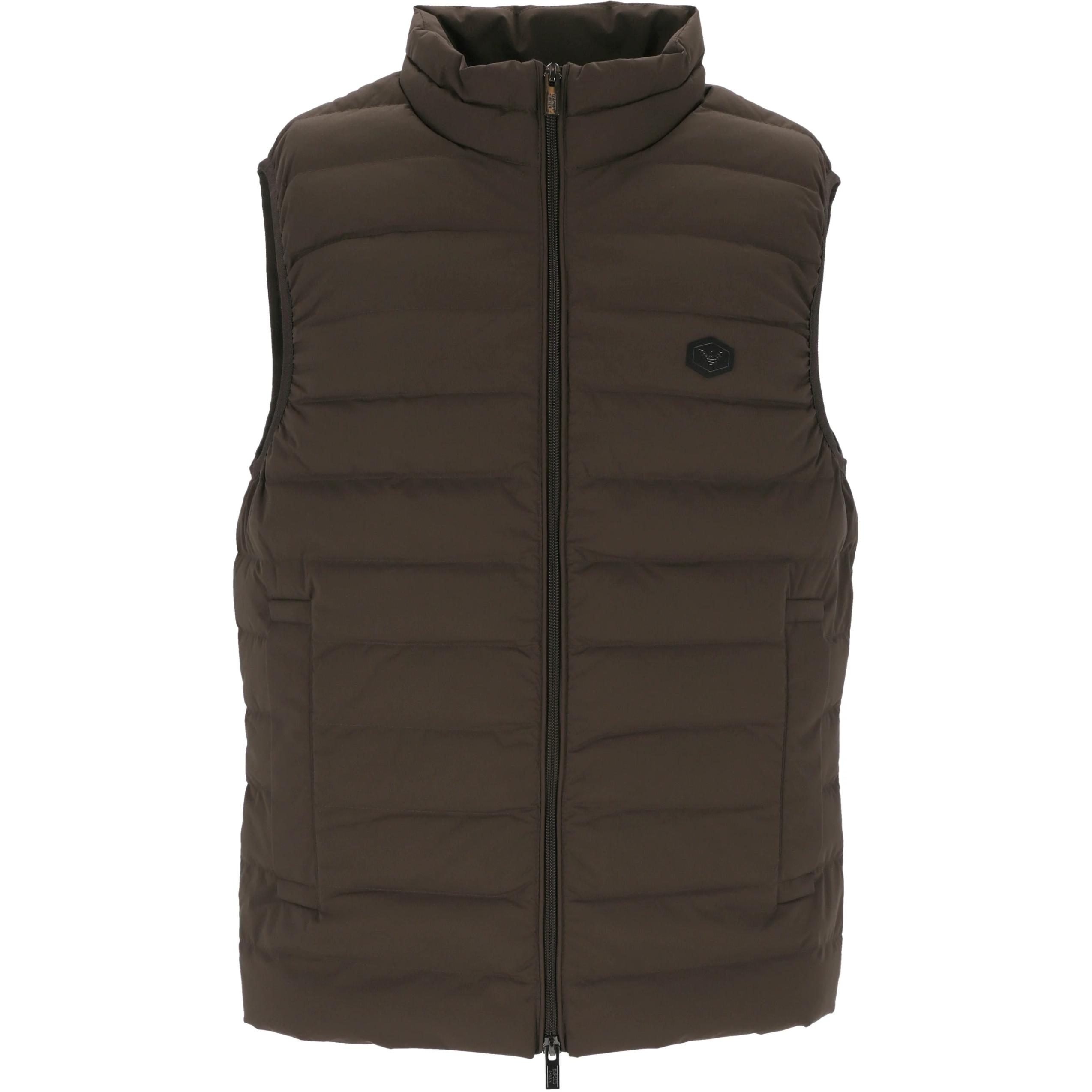 EMPORIO ARMANI Безрукавная куртка на молнии с утеплителем из пуха в стеганом нейлоне с нашивкой в виде орла, Olive Green