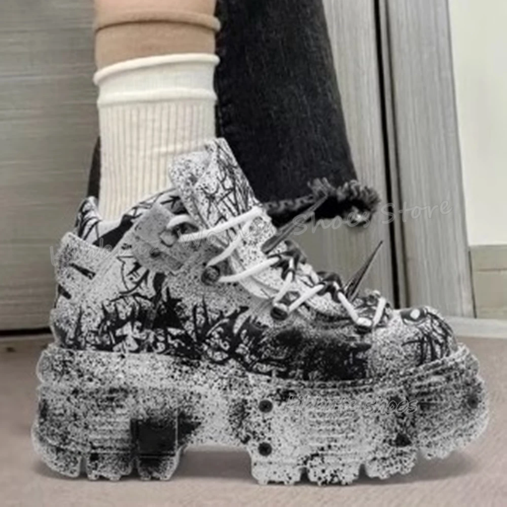 Кроссовки на толстой подошве с заклепками, готическая платформа, панк-рок, натуральная кожа, разноцветные модные элегантные лаконичные туфли, новейшая популярная девушка