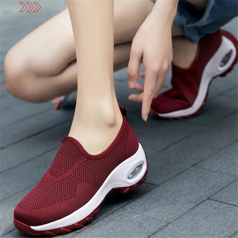 Кроссовки-носки женские сетчатые, дышащие сникерсы на плоской подошве, без застежки, на платформе, для весны