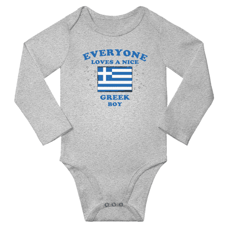 Everyone Loves a Nice Greek Boy Baby Long Slevve Bodysuits (Gray 12-18 Months)