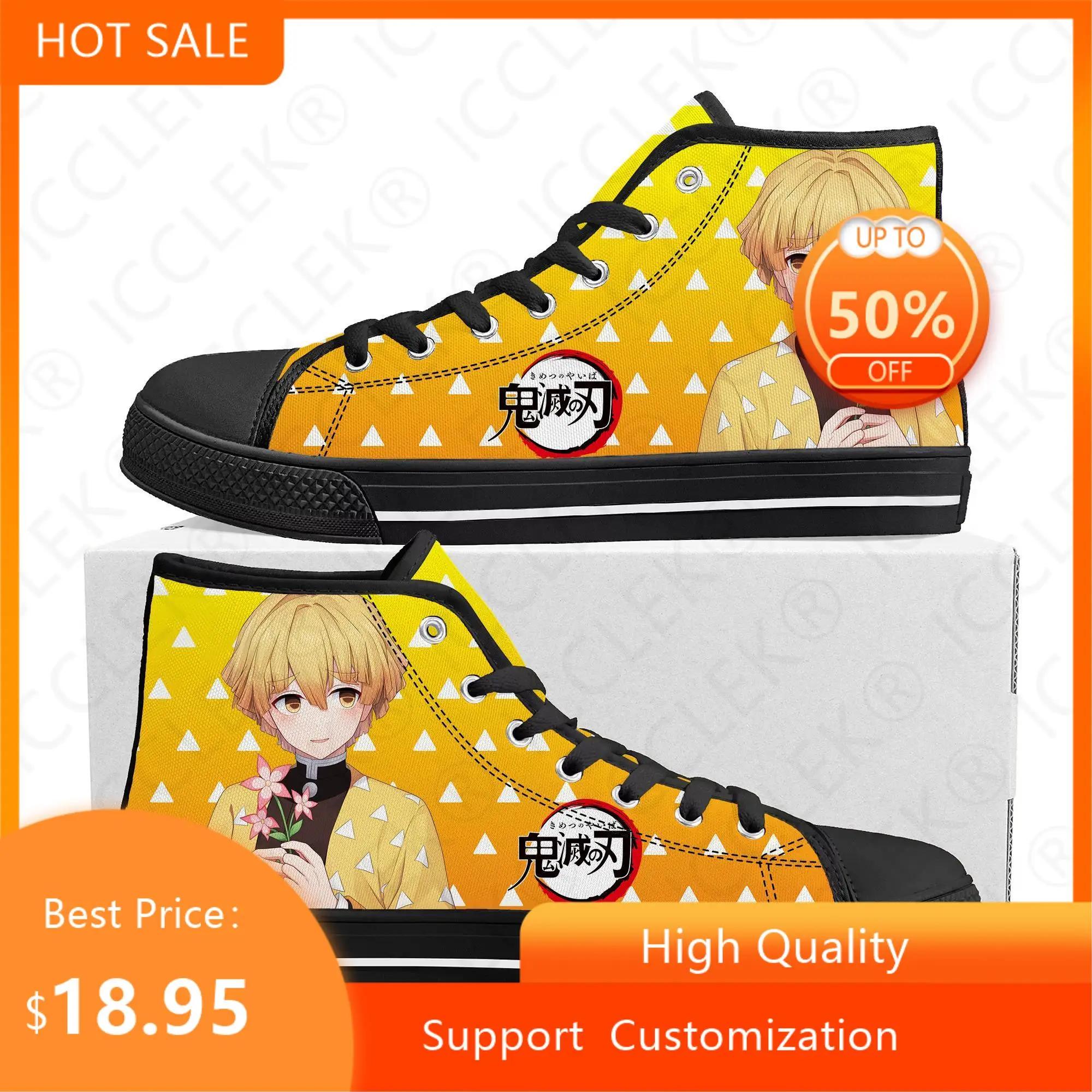 Кроссовки Agatsuma Zenitsu Demon Slayer Kimetsu No Yaiba высокие кроссовки Мужские Женские подростковые парусиновые кроссовки обувь на заказ