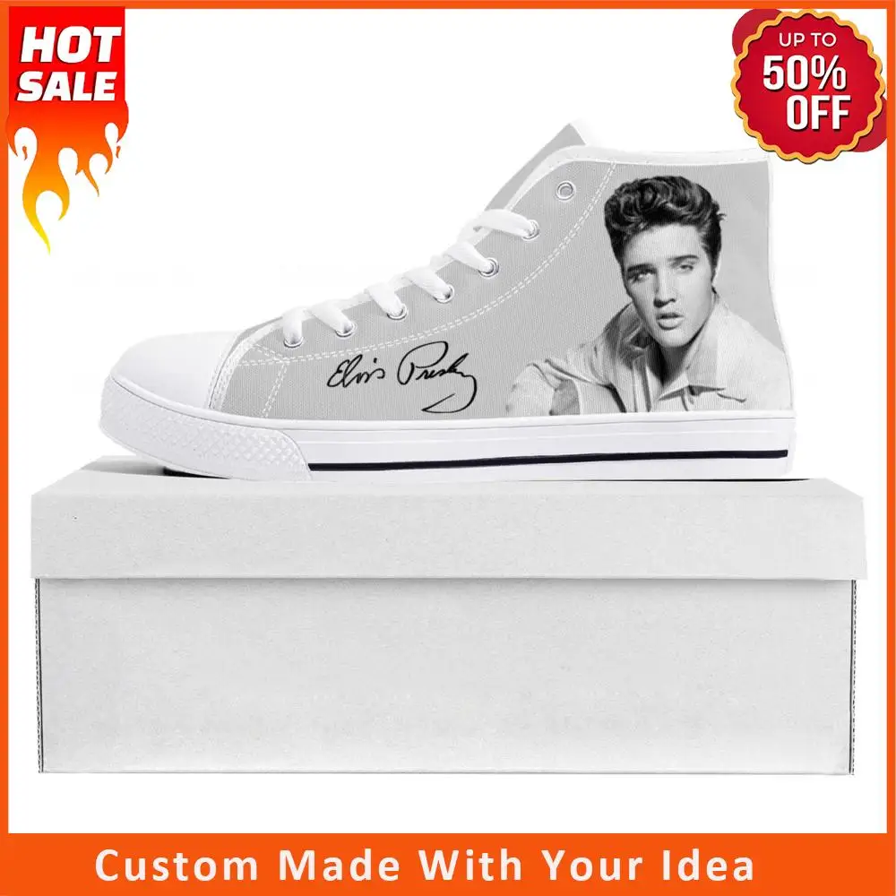 Кроссовки Elvis Aaron Presley рок Singer, высокие кеды, холщовые, для мужчин и женщин, подростков, обувь для пар, белые, под заказ