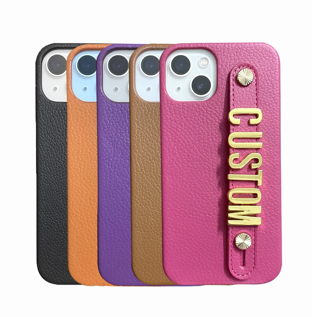 New Custom Initial Name Real Leather Phone Case For iPhone 11 12 13 Pro Mini Max X XR XS Metal Letters Apple Phone Cover