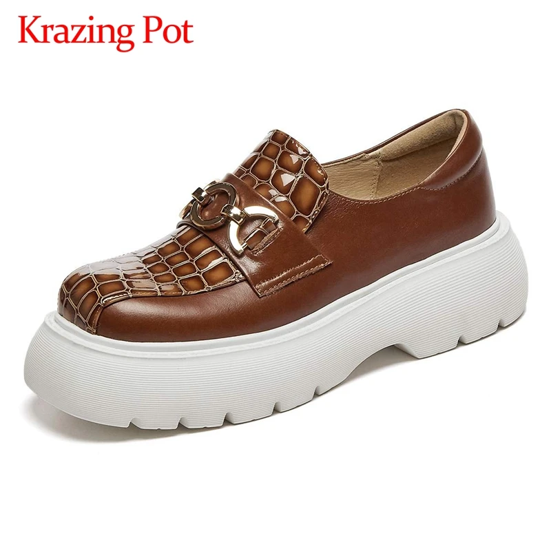 Кроссовки Krazing pot на толстой подошве, кожаные, металлические украшения, круглый носок, без застежки, удобная обувь с вулканизированной подош...