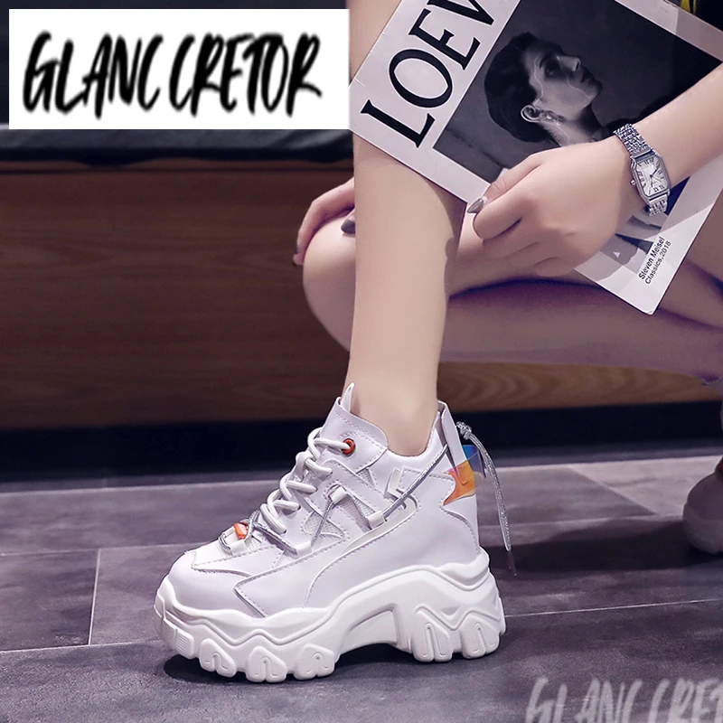 Кроссовки Moipheng женские Супер высокие, Вулканизированная подошва, массивные, повседневная обувь на шнуровке, черные