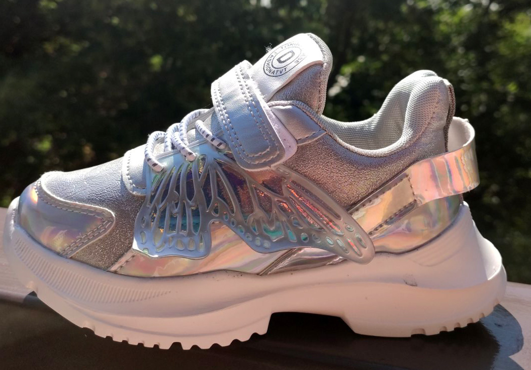 Сріблясті кросівки для дівчинки з крилами.