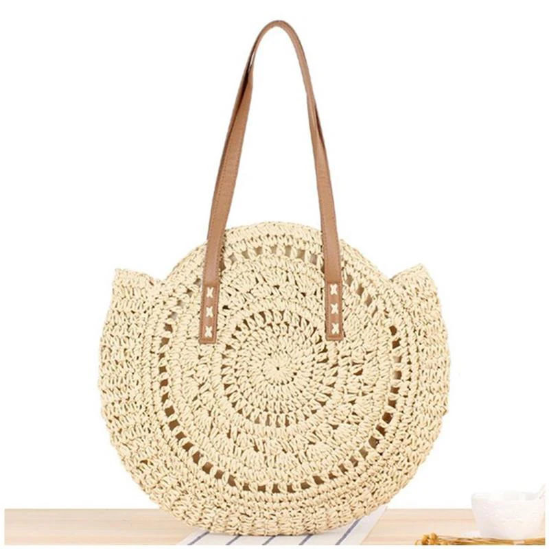 Круглая пляжная сумка из рафии, винтажная плетеная сумочка ручной работы на ремне, круглые плетеные богемные Летние повседневные мешки для ...