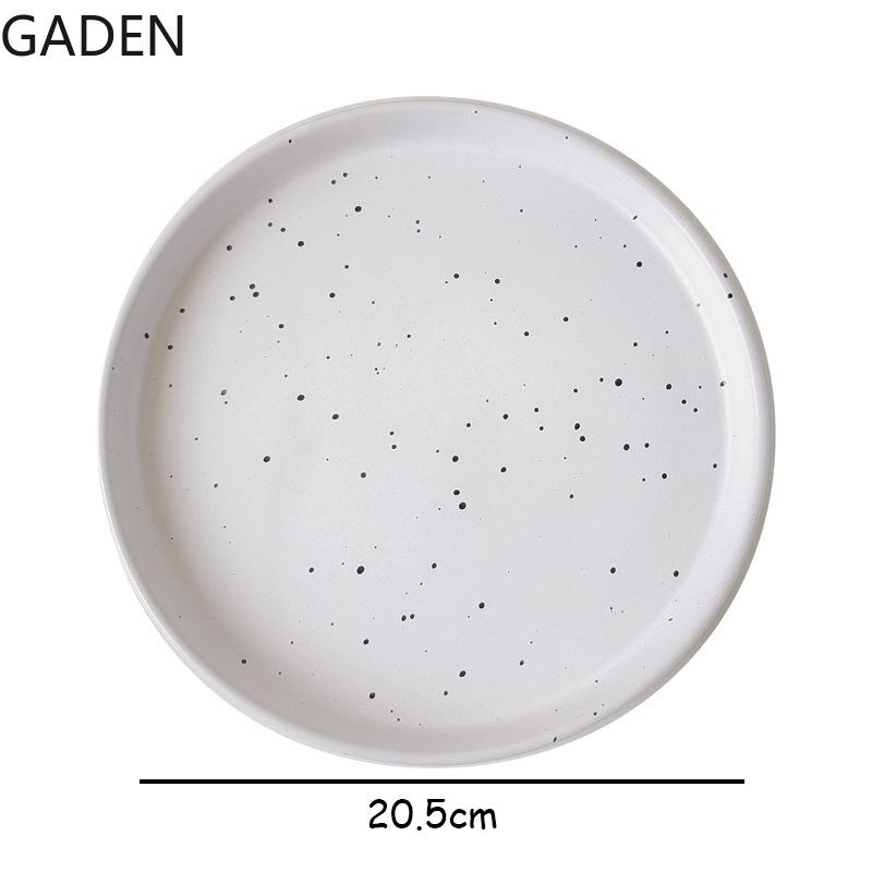 Круглая 8-дюймовая керамическая обеденная тарелка, украшение для стола в гостиную, черно-белая чернильная тарелка в горошек, скандинавская бытовая посуда, тарелка белый
