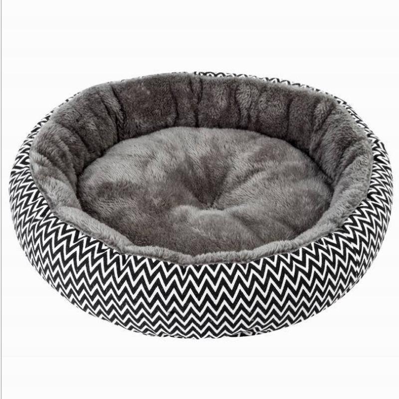 Круглое гнездо с волнистым узором для кошек и собак, утолщенное и теплое арктическое бархатное гнездо для маленьких кошек и кошек в машину S 34CM