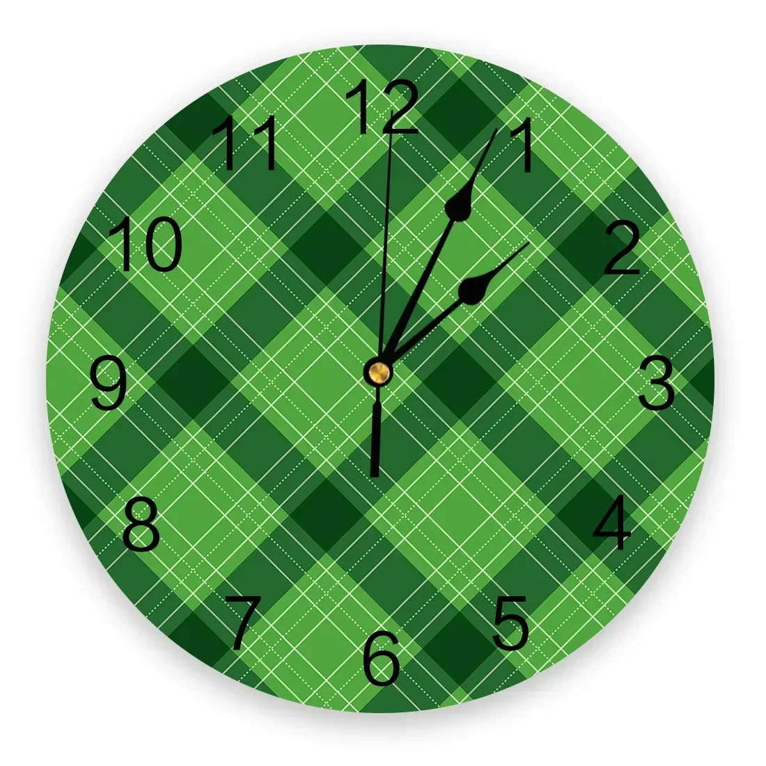 Круглые Настенные часы в зеленую клетку St. Patrick'S Day, креативный домашний декор, гостиная, кварцевые настенные часы с иглой, Подвесные часы