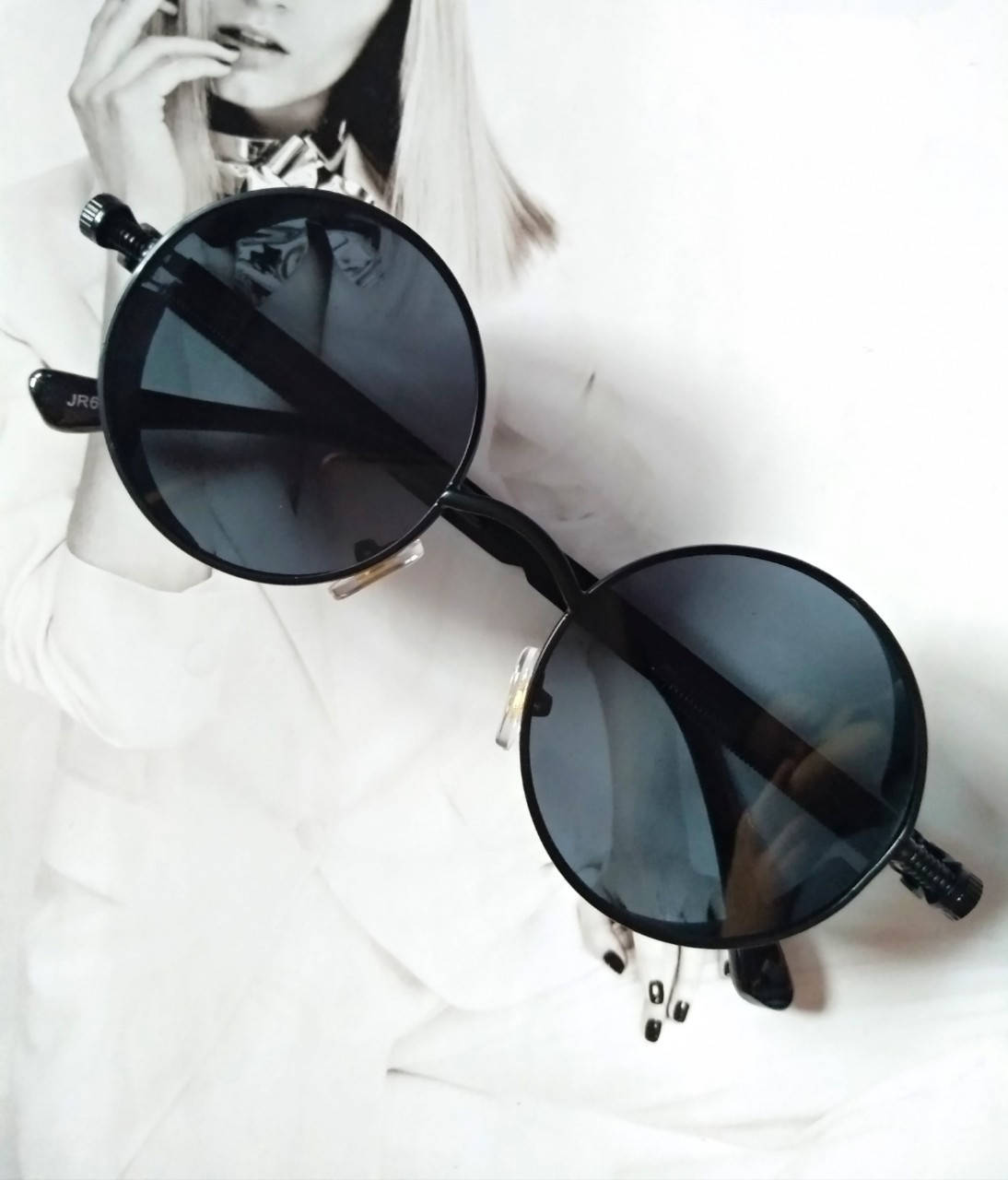 Очки круглой формы с затемненными стеклами в стиле минимализма являются самым первым изобретением для защиты от солнечных лучей и сокрытия глаз от окружающих. Именно такие были найдены в гробнице Тутанхамона и при раскопках Древнего Китая. Линзы первых были выполнены из тонких спилов изумруда, вторых – из кварца.