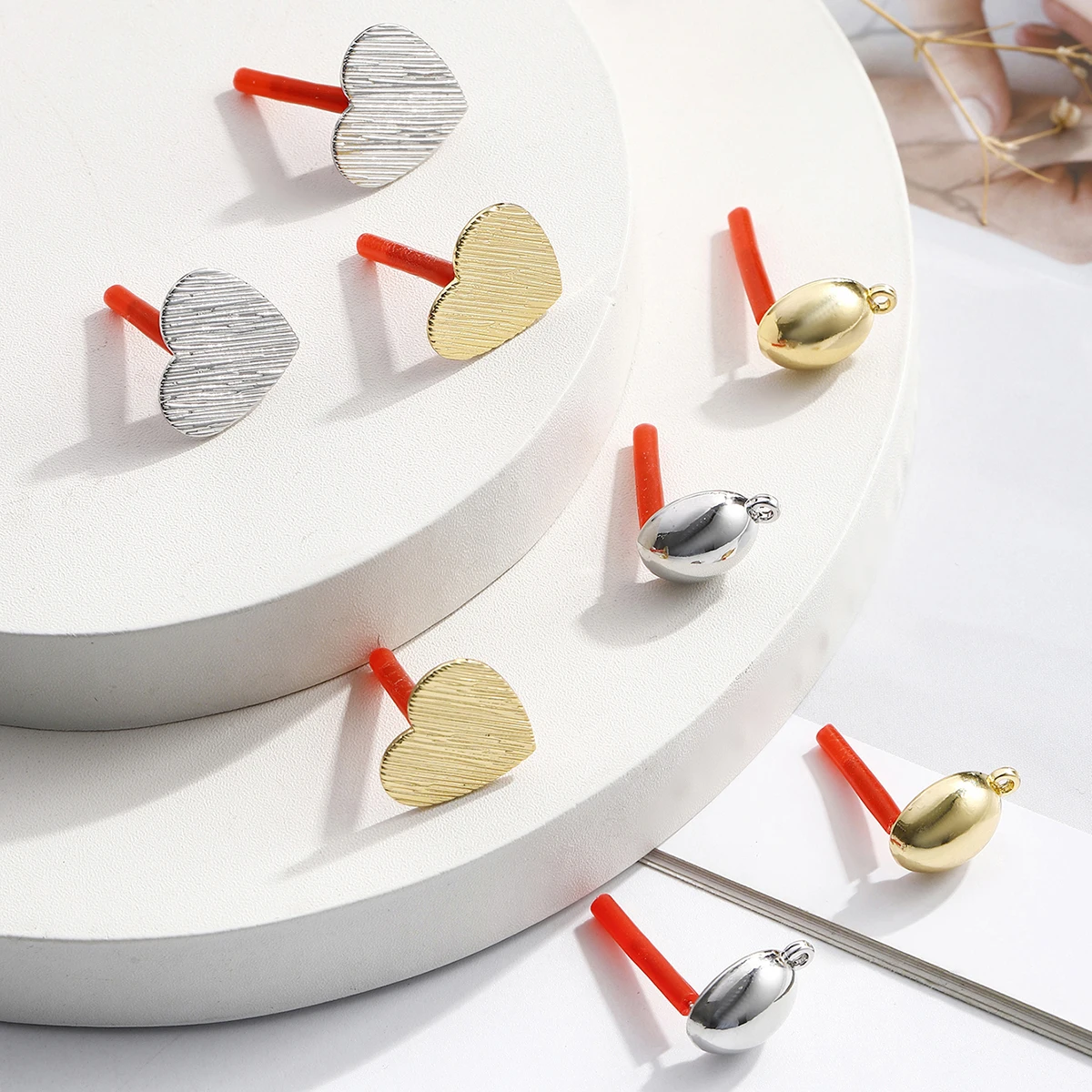 10pcs Love Heart Earrings Connectors Round Shape Silver Golden Color Stud Earrings Base Earring Settings Diy Jewelry Making