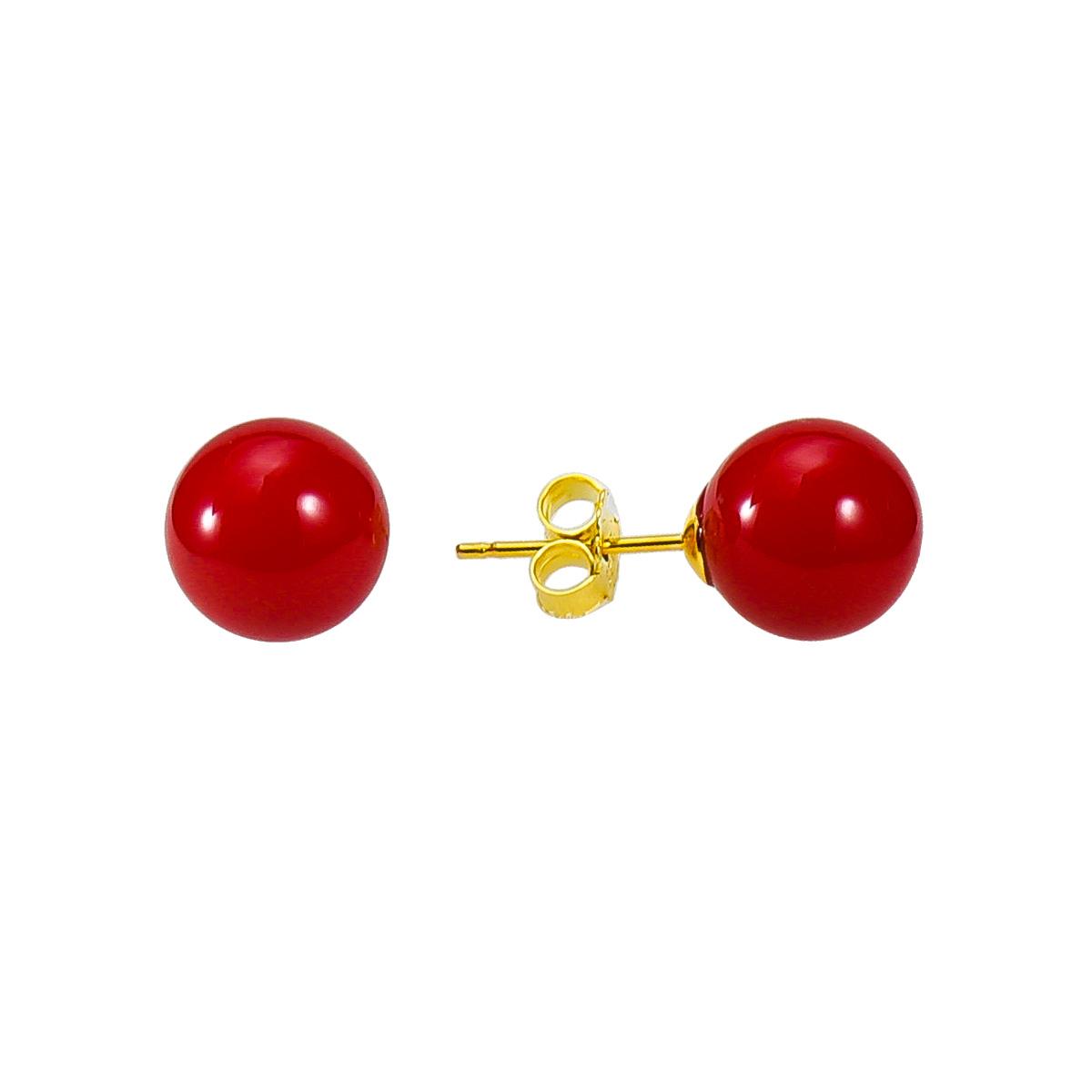 Круглые серьги-гвоздики из стерлингового серебра 18 карат с имитацией белого жемчуга диаметром 10 мм красный