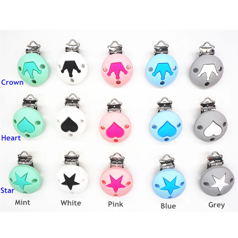 Круглые силиконовые зажимы Chengkai в форме звезды, сердца, короны, «сделай сам», детский держатель для цепочки, пустышки, зажимы для игрушек для кормления, 10 шт.