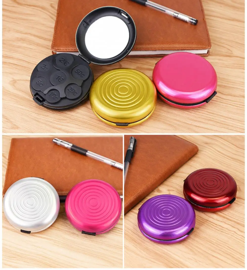 Круглый дозатор для долларов, евро, для хранения монет, женский кошелек, коробка для хранения, пластиковый кошелек для монет из алюминиевого...