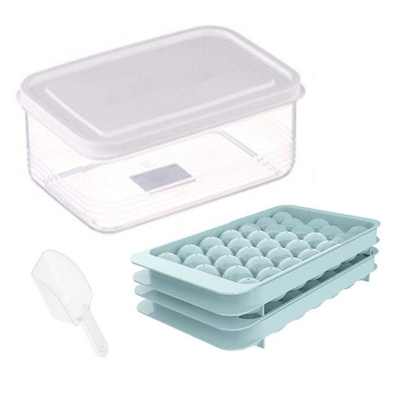Круглый лоток для кубиков льда с формой для контейнера, крышка для изготовления ледяных шариков и контейнерная лопатка Sets синий