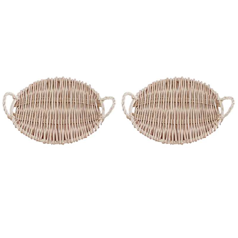 Круглый лоток из ротанга для фруктов с ручкой, поднос для хранения, корзина для завтрака, поднос для хлеба в пасторальном стиле, 2X