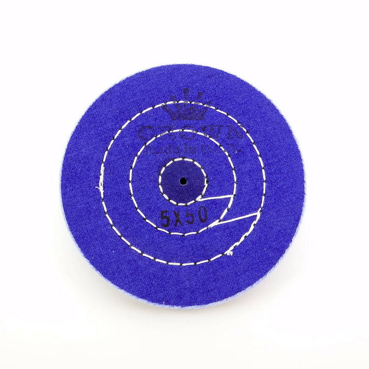 Круг изготовлен из муслина и пропитан специальным синим составом, скрепляющим волокна ткани, что увеличивает его износостойкость. Круг имеет высокую жесткость и используется с полировальной пастой для окончательной шлифовки любых металлов. Круг прошит. Диаметр: 120 мм, 50 слоев.