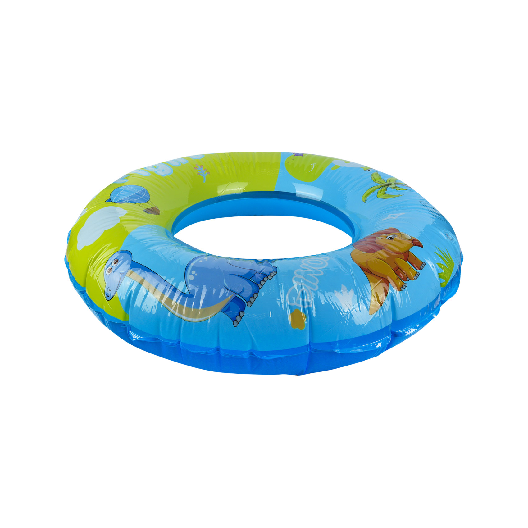 Надувной круг «Дино» – это полезный детский аксессуар для плавания, выполненный в ярких цветах. Основной цвет изделия – голубой, который дополнен зелеными элементами. На круге изображены веселые мультяшные динозавры, а также элементы пейзажа – пальмы и облака. Яркая надпись на внешнем крае круга придает ему игривый характер.Этот надувной круг обеспечит ребенку безопасное и увлекательное водное развлечение. Яркий и привлекательный дизайн развивает воображение ребенка и создает атмосферу веселья во время купания. Кроме того, круг способствует развитию навыков плавания у малышей, обучая их удерживаться на воде в игровой форме.Диаметр: 90 см.Состав: ПВХ.Запрещено для детей младше 3 лет.