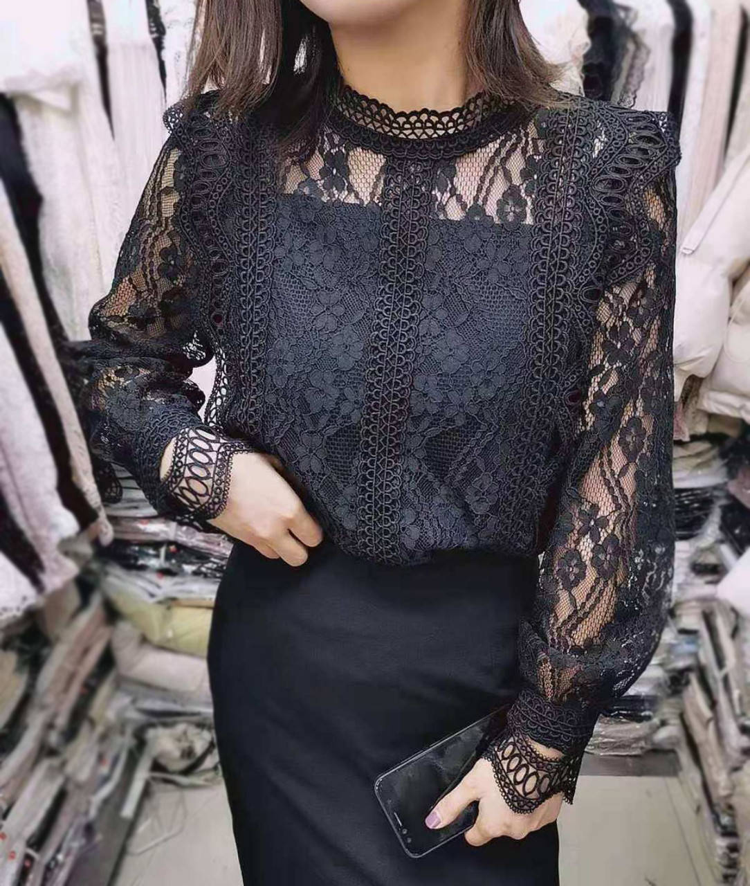 Кружевная блуза с длинными рукавами 42-46 (в расцветках)